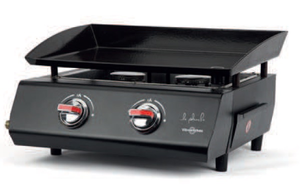 Acero pintado negro. 2 Quemadores a gas de 2,5kw (5kw). Plancha de acero esmaltado desmontable. Encendido Piezo eléctrico. Bandeja recoge grasa. Apta para gas butano/propano. Medidas: 53 x 47 x 28 cm. Peso 13 kg.