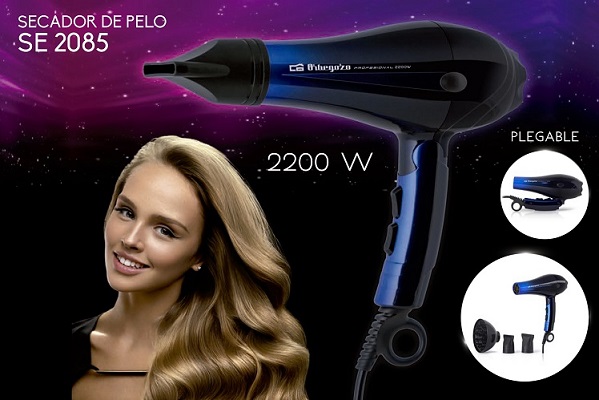 Secador PROFESIONAL plegable. Diseño moderno. Potencia 2000-2200W. Motor AC profesional. Filtro extraíble para fácil limpieza.2 niveles de velocidad. 3 niveles de temperatura. Plegable para un fácil transporte y almacenaje. Incluye 2 concentradores y difusor. Anilla para colgar. Protección contra sobrecalentamiento. 220-240V~50/60Hz.